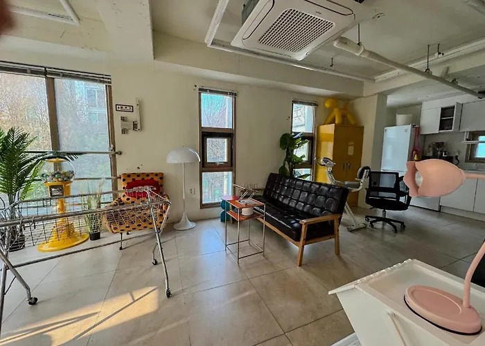 この寝室1室のアパートは聖水地下鉄駅から徒歩で約10分で、宗廟から自動車で約15分です。 この広々としたアパートから7キロメートル離れた所のところに明洞ハイパーショッピングがあります。